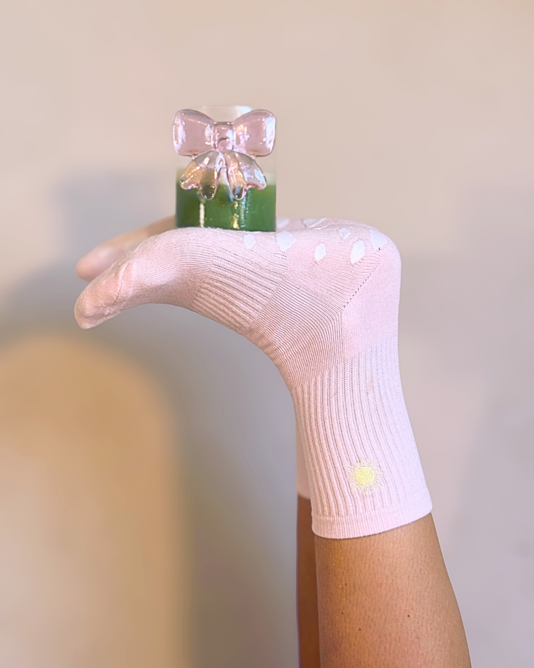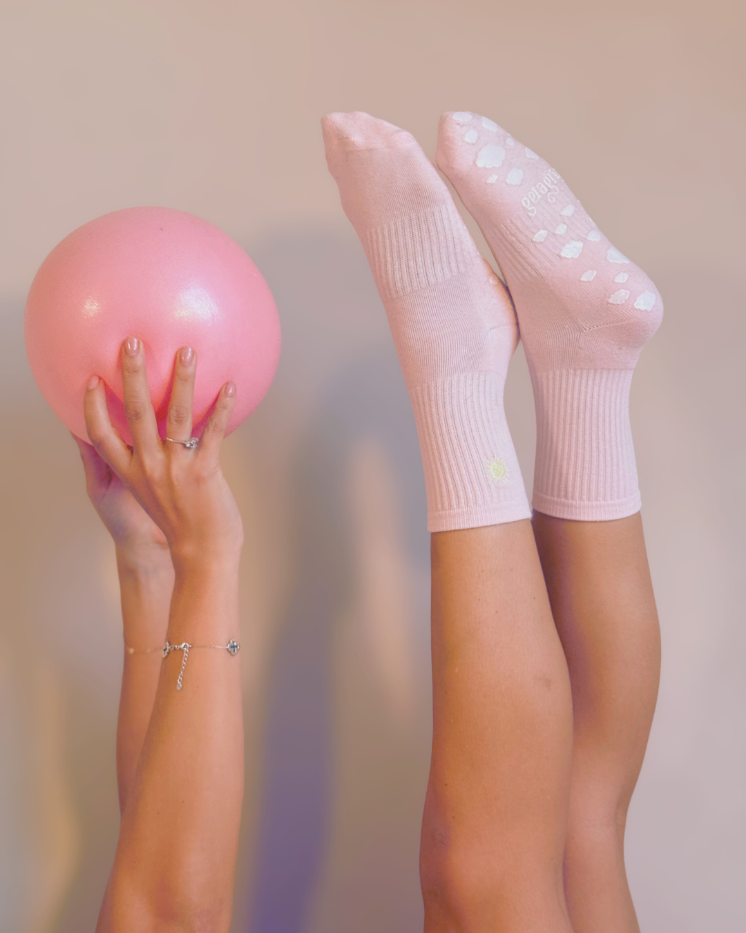 We’ve collaborated with Pilates Princess and yoga teacher Shona Manderson to create these irresistibly cute organic cotton grip socks- blending Get A Grip’s signature quality with Shona’s playful, feminine style.