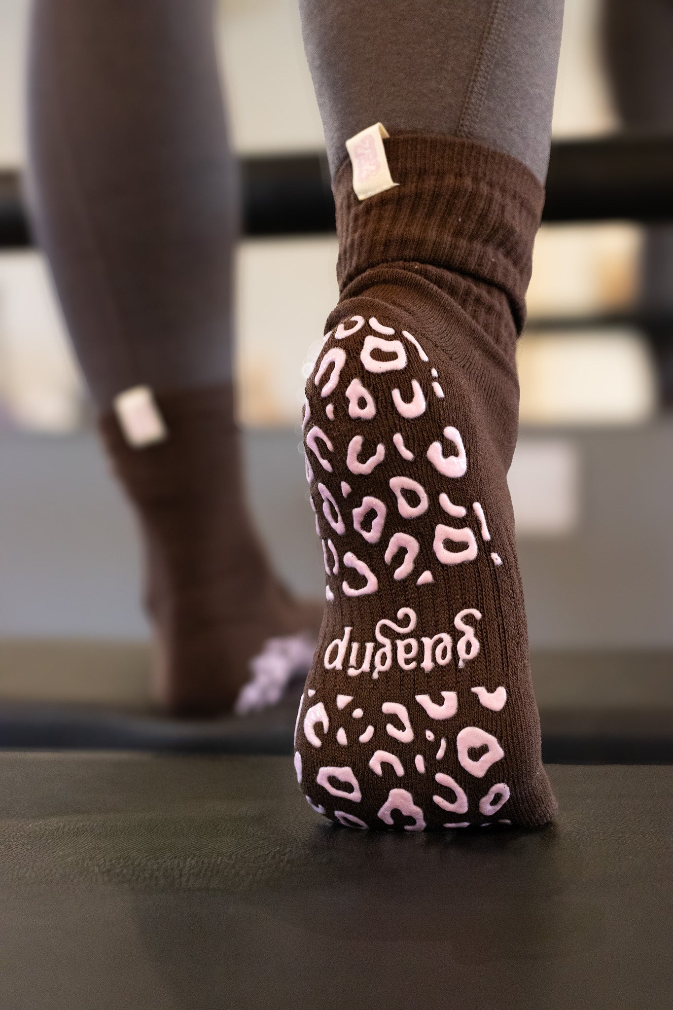 These brown socks were made to match your favourite Coffee Bean Pilates set- seamless style with a nod to the wild side.